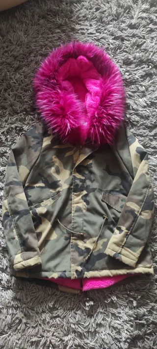 Parka muy abrigada para niña, ideal para los días fríos. - Diseño de camuflaje. - Forro interior de pelo rosa. - Capucha con pelo sintético rosa.