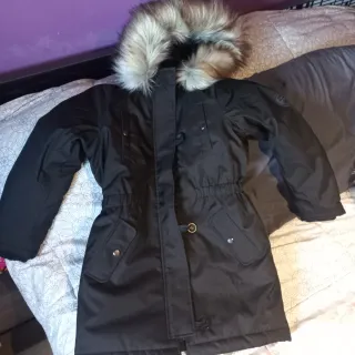 Elegante chaquetón para niña o adolescente con un acabado brillante. - Capucha con pelo. - Cintura elástica para un ajuste cómodo. - Puños elásticos. En muy buen estado,es muy calentita y cómoda