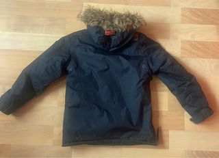 Parka infantil de la marca Norwey, talla 10. Prenda completamente nueva, ideal para el frío. - Diseño con capucha y pelo sintético. - Bolsillo frontal grande con solapa. - Cierre de cremallera y botones a presión. - Detalles de la bandera de Noruega.