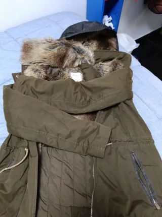 Parka de la marca Trafaluc con forro interior de pelo sintético. - Color verde militar en el exterior. - Detalle de pelo sintético en color marrón en el interior y cuello. - Capucha integrada. - Cordón ajustable en la cintura. - Bolsillos frontales con cremallera. Cuello y capucha desmontable para niña muy calentita