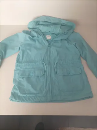 Parca infantil de Sfera en color verde azulado, ideal para entretiempo. - Capucha integrada. - Cierre de cremallera. - Dos bolsillos delanteros con solapa y botón. - Cintura ajustable con cordón interior. - Puños elásticos.