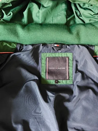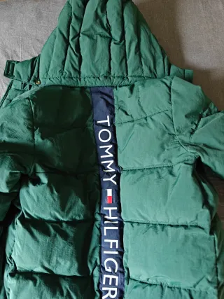 Parka infantil de la marca Tommy Hilfiger en talla 140/10 años. Presenta un diseño acolchado y capucha desmontable. - Color verde oscuro. - Banda central con logo de la marca. - En perfecto estado con poco uso.
