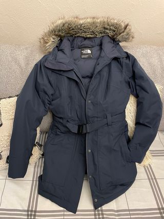 Parka The North Face para mujer, talla M. Diseño moderno y funcional. - Capucha con pelo sintético. - Cintura ajustable. - Cierre de cremallera.