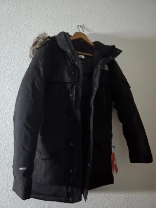 Parka comprada en Octubre de 2025 en Tokyo en tienda OFICIAL de the north face, la que esta desde harajuku a shibuya, talla M. Solo 1 uso para no tener que meterla en la maleta y que pesase más 😅. El pelo de la capucha también está, pero se lo quite por comodidad para pasar el control del aeropuerto.