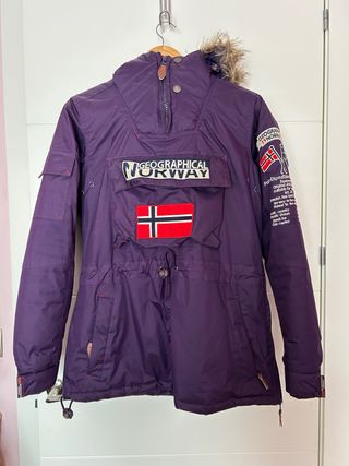 Parka de la marca Geographical Norway en color fucsia cremalleras laterales para mayor comodidad ,muy abrigada especial para la nieve usada en contadas ocasiones Hago envío, también se puede recoger en mano en Valladolid o Palencia. - Diseño con capucha y pelo. - Bolsillo frontal con cremallera y logo. - Parches decorativos en la manga. Auténtica.