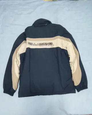 Parka de la marca Billabong con un diseño moderno. Talla M pero es grande, como una L - Diseño de 3/4. - Combinación de colores azul y beige. - Con capucha - la cremallera sube y baja pero no puede abrirse. Hay que arreglar