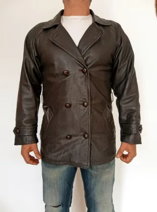 Más prendas de cuero en mi perfil. Usado, pero en muy buen estado, sin defectos. Simplemente ligeras señales de uso. Forro en muy buen estado. Cuero ovino de excelente calidad flexible y suave. Grosor medio-grueso. Textura de grano medio. Color marrón chocolate oscuro. Talla S. El modelo mide 1,74 y pesa 82 kgs. Medidas indicadas en las fotos. Preguntar cualquier información sin compromiso.