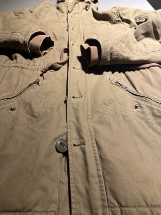 Parka con capucha de la marca Dockers en color beige y talla M. Elegante. - Cierre de botones y cremallera. - Dos bolsillos frontales con solapa. - Capucha ajustable. - Puños ajustables. Llevada en 5 ocasiones solo...