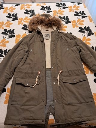 Parka utilizada en 2 o 3 ocasiones, está impecable color marrón talla M se abrocha con cremallera y clics múltiples bolsillos acolchada ajustable de cintura y puños se hacen envíos