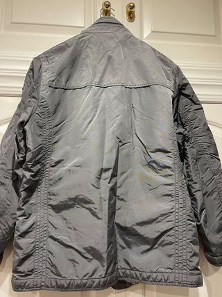 Cazadora acolchada en buen estado. - Diseño con múltiples líneas horizontales. - Cuello alto. - Cierre de cremallera.