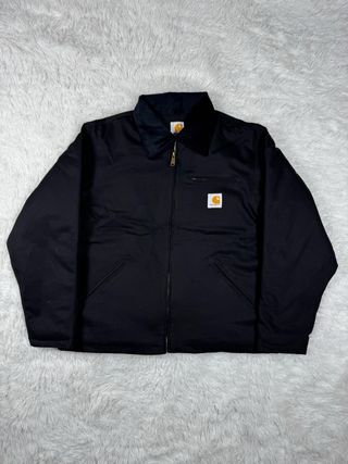 Chaqueta Carhartt de color negro, talla L. Un clásico para el día a día. - Cuello de pana. - Cierre de cremallera. - Bolsillos frontales.