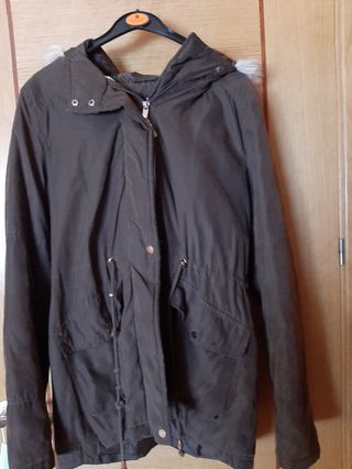 Abrigo-parka de niños , talla 11-12, con cremallera y corchetes, bolsillos con cierres y dos bolsillos con cremallera, lleva capucha. Esta perfecto.
