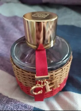 Perfume CH Central Park de Carolina Herrera. Un aroma fresco y vibrante. - Diseño de botella con detalles en mimbre y cinta roja. - Charm con las iniciales CH en dorado.