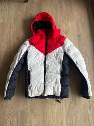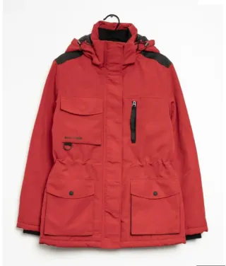 Talla XL. Modelo Jackson. Color rojo. Tejido Exterior antidesgarro con tratamiento hodrofugo. Interior Aislante de fibra Texwarm y acabado aluminizado. Gran capucha con borde de símil piel. Cremallera frontal con doble cierre. Cinco bolsillos exteriores. Los 2 frontales inferiores de gran tamaño con cierre por clip y los 2 superiores con cremallera hermética. Bolsillos externo en manga derecha e interno con cremallera. En muy buen estado, sin signos de uso o desgaste.