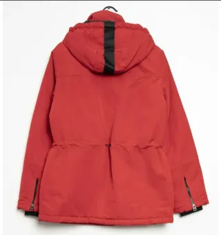 Parka de invierno en color rojo, con un diseño moderno y detalles que la hacen única. Perfecta para mantenerte abrigado/a con estilo. - Capucha con ribete de pelo sintético. - Cierre frontal con cremallera y botones. - Bolsillos delanteros con solapa. - Cordón ajustable en la cintura para un mejor ajuste. - Detalle de logo en la manga.