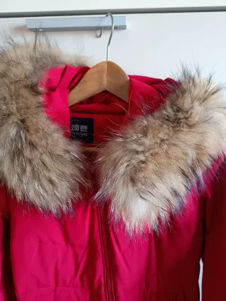 Chaqueta tipo parka con capucha y detalles de pelo sintético. - Cierre de cremallera y botones. - Bolsillos frontales con solapa. - Puños ajustables. - Forro interior naranja. Estado impecable, puesta en 4 o 5 ocasiones, nueva vale 250