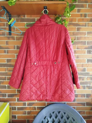 Chaquetón acolchado de color rojo, perfecto para el frío. - Diseño acolchado con rombos. - Cuello alto. - Cierre de cremallera y botones. - Dos bolsillos laterales con cremallera. - Dos bolsillos superiores con botón.