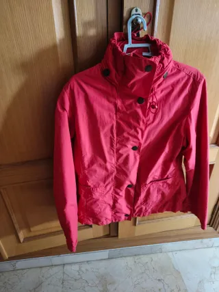 Anorak de mujer en color rojo, talla M. Una prenda versátil y cómoda. - Cierre de botones. - Bolsillos frontales. - Cuello alto.