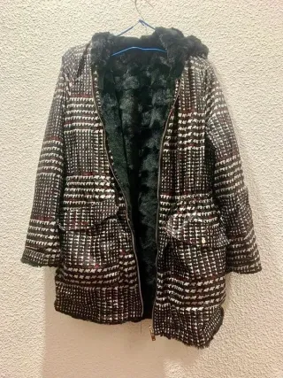 Parka acolchada reversible con efecto de pelo de Cortefiel. en talla S (da una M perfectamente).🧥💘👌🏻 Anorak acolchado reversible,es una parka reversible con capucha y forro de piel sintética en un patrón de cuadros pata de gallo blanco, negro y rojo. Combina calidad ligera de efecto pelo y tejido técnico. Calidad exterior con tratamiento repelente al agua. Cierre con cremallera central y bolsillos de parche. El tejido técnico empleado para confeccionar esta prenda tienen un acabado repelente al agua que le confiere una protección duradera contra manchas a base de agua además de una gran durabilidad y fácil mantenimiento.