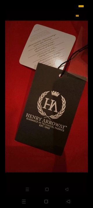 sin usar. rojo muy vinito tipo gabardina. tiene los botones de las mangas rotos pero no se nota. se ve en la foto