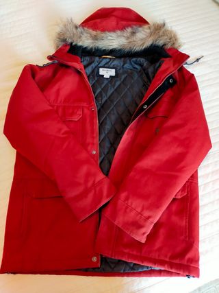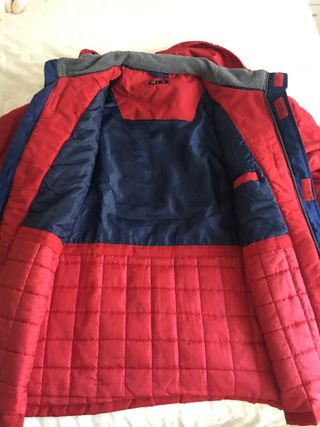 Talla XL. Modelo Jackson. Color rojo. Tejido Exterior antidesgarro con tratamiento hodrofugo. Interior Aislante de fibra Texwarm y acabado aluminizado. Gran capucha con borde de símil piel. Cremallera frontal con doble cierre. Cinco bolsillos exteriores. Los 2 frontales inferiores de gran tamaño con cierre por clip y los 2 superiores con cremallera hermética. Bolsillos externo en manga derecha e interno con cremallera. En muy buen estado, sin signos de uso o desgaste.