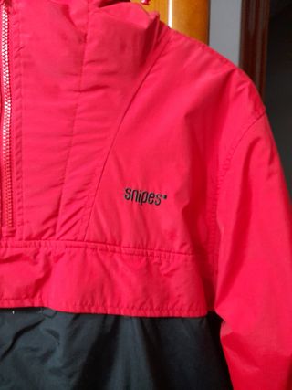 Parka hombre snipes rojo y negro, en las fotos el color rojo no se aprecia muy bien capucha y bolsillos delanteros