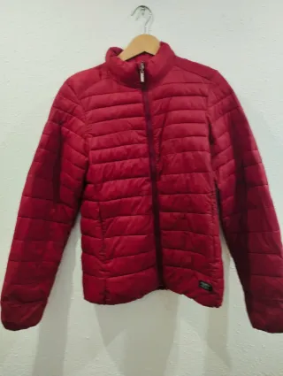 Parka roja talla XL nueva impermeable acolchada con capucha que sale del cuello. Restos de tienda. Tengo más productos en mi perfil.