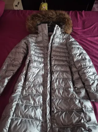 Plumífero acolchado de buena calidad. Cierre de cremallera. Cuello alto. Bolsillos laterales con cremallera. Capucha desmontable y el pelo también se puede quitar. En una de las fotos se puede apreciar ligeramente unas marcas d costura porque tenía unos botones de cuerno pero se los quité, no se nota apenas. Lo vendo porque me queda ya pequeño pero está muy bien conservado y abriga mucho.