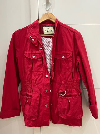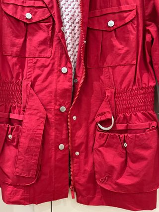 Preciosa trenca de color rojo. - Diseño clásico. - Cierre de botones. - Cuello con solapas.