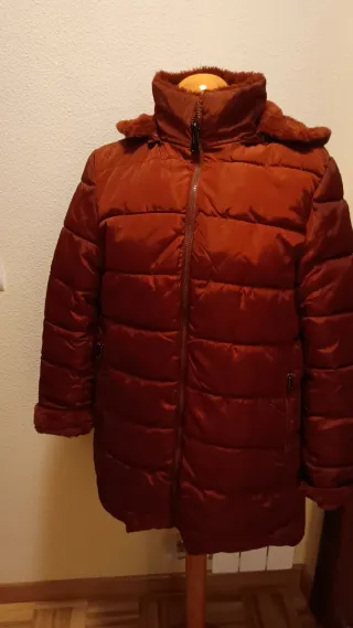 plumifero reversible del corte ingles. Tiene capucha, es de muy buena calidad, casi no pesa y abriga mucho. Y es reversible, en color rojo o gris. En la parte de atrás acaba en forma redondita para tapar bien el culete. Queda muy bien. Es unisex.