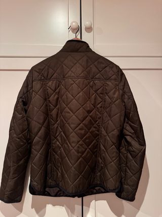 Cazadora acolchada para chico, talla 16 años. Está prácticamente nueva. - Diseño de cuadros en tonos verdes y negros. - Capucha integrada. - Acolchada y abrigada.