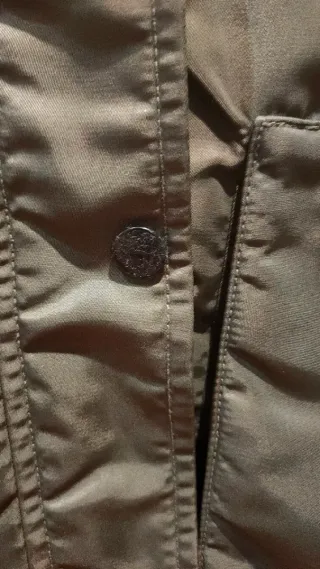 Chaquetón estilo trenka con cierre de cuernos en perfecto estado.Talla Color verde caqui Botón en las mangas Acolchado Ver todas las fotos. - Diseño clásico. - Bolsillos frontales. - Capucha integrada.