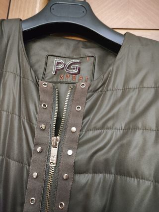 Preciosa chaqueta acolchada de la marca PG SPORT. Es de color verde oliva y talla 6. Se encuentra en muy buen estado. - Diseño elegante y moderno. - Acolchado ligero y cómodo. - Cierre de cremallera.
