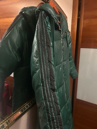 Plumas verde, de la marca Fórmula jóven, muy calentito y en muy buen estado. Estaba guardado, se vende porque no vale talla. Le falta el cinturón
