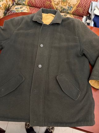 Chaquetón reversible con un lado en color verde y el otro en amarillo. - Talla 60-62. - Diseño clásico con cuello. - Cierre de botones.