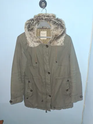 Parka de invierno con capucha y forro interior. - Capucha con pelo sintético que se puede retirar. - Cierre de cremallera y botones. - Bolsillos frontales con solapa. - Cordón ajustable en la cintura y bajo. - Cómodo y calentito para el invierno. - Talla: M. - Precio original: 100€.