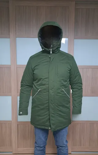 Parka para hombre en color verde. Cuenta con capucha y cierre de cremallera. - Cierre frontal con cremallera. - Bolsillos laterales. - Capucha integrada. En perfecto estado, poco uso.