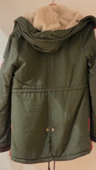 Parka reversible de Primark. Con capucha. Una parte, tejido tipo gabardina color verde militar y, la otra, tejido con pelo color beige. Herrajes dorados. Bolsillos tanto en una parte como en otra. En perfecto estado. Talla XS. Medidas aprox.: hombros, 42 cm; axilas, 52 cm, y largo, 80 cm. No se admiten devoluciones. Con lote hago descuentos!😊