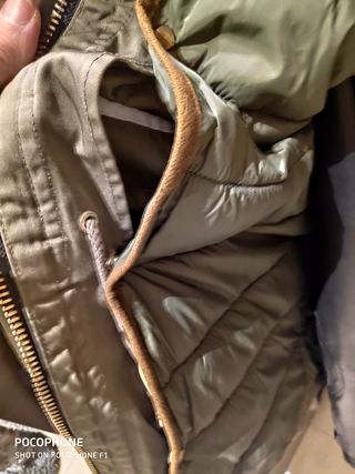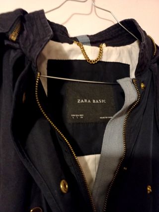 Parka de Zara en color caqui talla S. - Cierre de cremallera. - Bolsillos con cremallera y botón. - Cordón ajustable en la cintura.