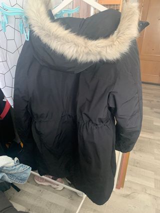 Parka acolchada con capucha desmontable. Muy calentita. Talla M, aunque talla un poco grande. Medidas: 62 cm. de ancho y 84 cm. de largo (desde el hombro). Sólo se ha puesto en una ocasión. Se vende porque le está pequeña. Tiene un recosido en la axila a consecuencia de esto (ver última foto). Pero no es visible puesto. Precio original 89'90€.