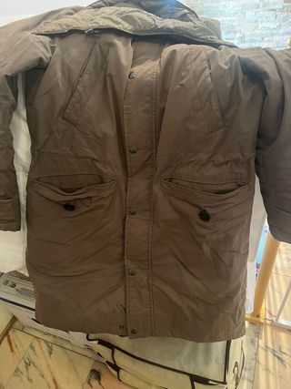Cazadora tipo parka. Es impermeable y perfecta para hacer frente a bajas temperaturas. Tiene forro por dentro y pelito. Es muy abrigada. Tiene capucha extraible tb muy abrigada con pelo por dentro. En perfecto estado. PRECIO NEGOCIABLE