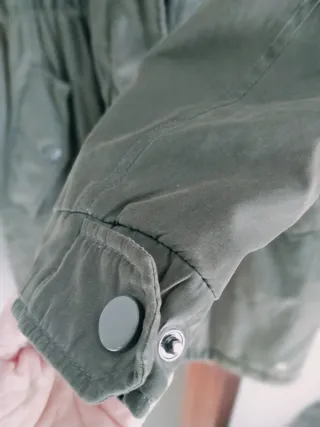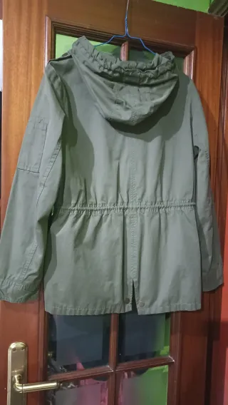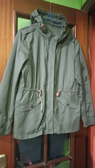 Parka ligera de algodón, ideal para la temporada de verano. Su diseño la hace versátil y cómoda.practicamente nueva - Cierre de botones a presión. - Cintura ajustable con cordón. - Bolsillos frontales. - Capucha integrada.