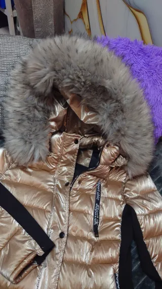 Parka dorada mujer con capucha de pelo