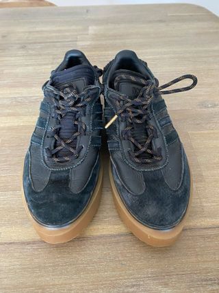 Zapatillas deportivas Adidas x Ivy Park. - Talla 37 1/3. -tienen gastado los talones como muestra en la foto - Diseño con detalles en gamuza y suela gruesa. - Cordones amarillos. - Tres rayas características de Adidas.
