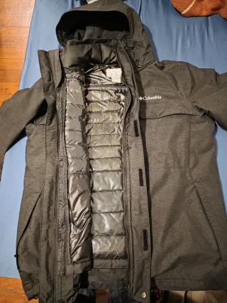Chaqueta Columbia Cloverdale Interchange 3 en 1. - Color gris jaspeado. - Diseño con capucha. - Bolsillos frontales con solapa. - Cierre de cremallera frontal.