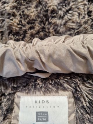 Parka para niña 15-16 años 176 cm. El Corte Inglés, en color beige. Ideal para el frío. Largo manga 60;hombros 44;espalda 51; largo 86. No hago envíos - Capucha con pelo. - Cierre de cremallera. - Bolsillos laterales.