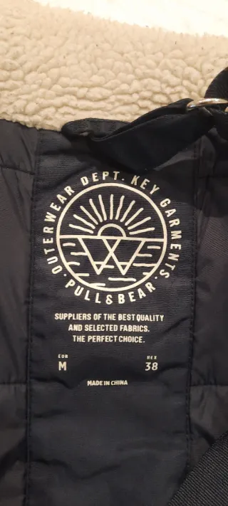 Parka de la marca Pull&Bear en color azul marino. Es una prenda muy abrigada, con capucha, totalmente forrada, parte borreguillo, parte acolchado. - Cierre de cremallera y botones. - Dos bolsillos frontales con solapa. Dos de sobre abajo También dos bolsillos interiores y tirantes desmontables. - cintura ajustables si se desea.