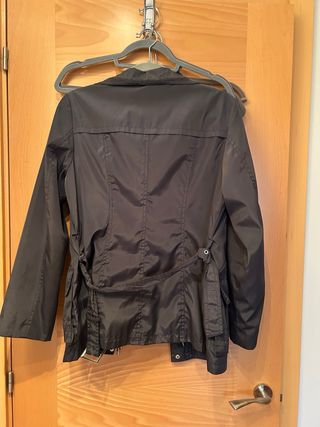 Parka gabardina fina de color marfil. Es una prenda versátil y elegante. - Diseño con cinturón. - Cierre: cremallera con solapa y corchetes - Bolsillos frontales y laterales. - con capucha, se quita y se pone con cremallera.