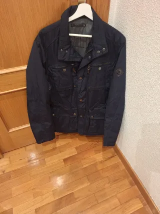 Puedes encontrarla en su ágina oficial por 280€. Este modelo en azul con el borrego interior en crema está agotado, solo está disponible con el interior en marrón oscuro Usada pero impecable, la capucha desmontable, que nunca usé se perdió, razón de su precio (negociable dentro de lo razonable) Importante; es tallaje americano, luego es una S que corresponde a una M europea.