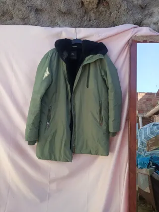 Abrigo tipo trenca de Zara con forro térmico. - Capucha con pelo. - Cierre de cremallera. - Bolsillos con cremallera.tiene algúna manchita en fotos se aprecia calienta mucho